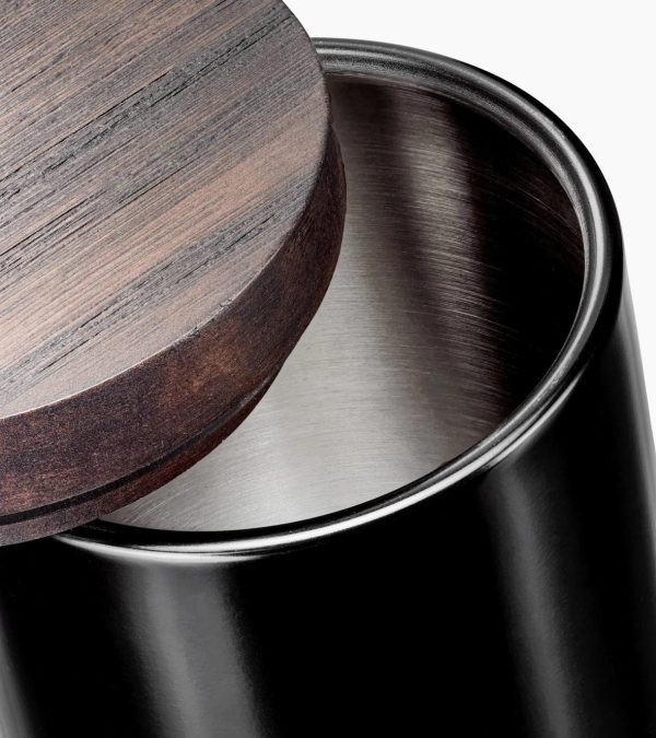 Elegant coffee tin from Porsche with branded serving spoon.Enjoying aromatic coffee on a whole new level – with this exclusive coffee tin designed by Studio F. A. Porsche. Its elegant wooden lid, inspired by the Porsche interior, preserves the full aroma of freshly roasted coffee beans and coffee grounds thanks to its special seal. The matt Porsche logo on the container gives the tin an exclusive touch. The sophisticated design is crowned by the measuring spoon with matt Porsche logo included, helping make precise dosing easier. Capacity approx. 1.2 kg or 1.2 l.