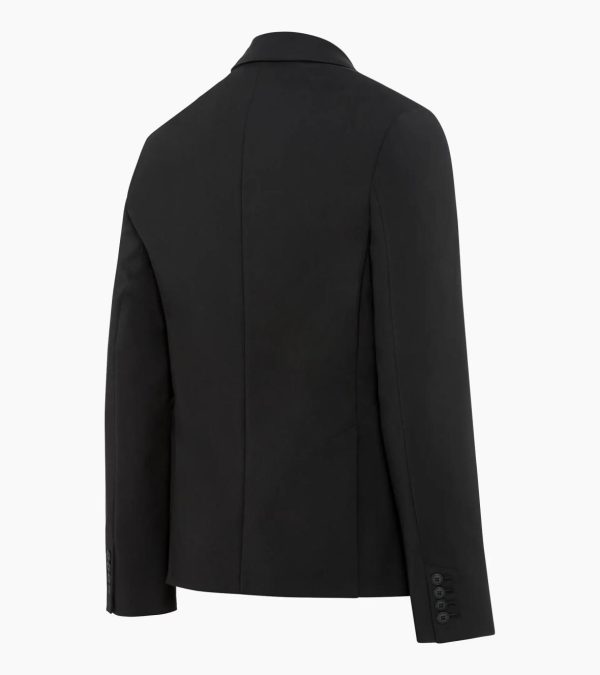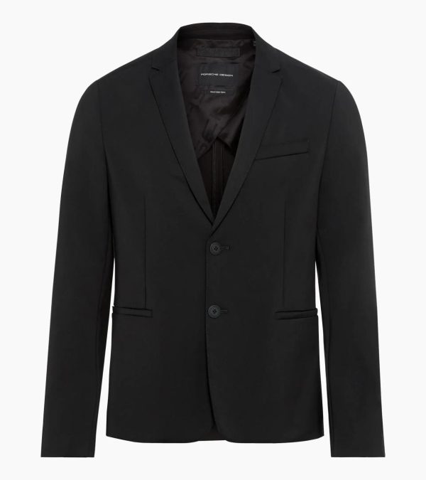 Smart two-button blazer from Porsche Design with a collar, breast pocket and stylish lining.Perfects the modern athleisure look: the classic blazer with two buttons and a double vent at the back. Refined details include the slightly overlapping cufflinks, the classic breast pocket and the jacquard butterfly lining with PD icon print and two piped pockets. For all-over athleisure, the blazer can be perfectly combined with the athleisure trousers.