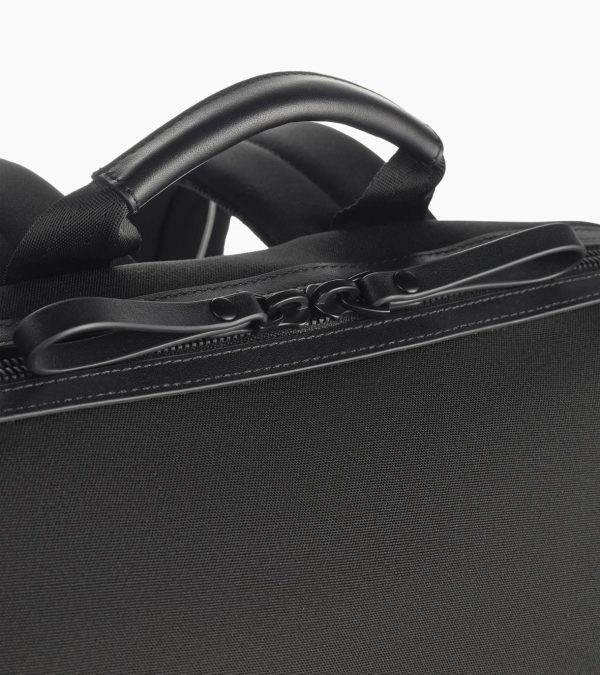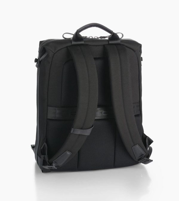Modern backpack from Porsche with 13” notebook compartment and two-way zip.The backpack from the Heritage collection combines timeless elegance with modern functionality thanks to the historic Gold-coloured Porsche logo and water-repellent material – inspired by the 911 Cabriolet roof. Practical two-way zip fasteners allow easy access to the main compartment with padded 13” notebook compartment. On its front, the backpack offers an impressive business organiser for all essentials. The inner lining is visually impressive thanks to the iconic Pascha pattern in Olive-Black. A special highlight: the volume of the bag can be expanded if necessary thanks to clever side flaps with original Tenax® buttons from the Porsche convertible top fasteners. High-quality leather details on the handles, the zip fastener border and the zip pullers underline the stylish design and ensure a pleasant feel. The design is rounded off by the padded, adjustable shoulder strap.