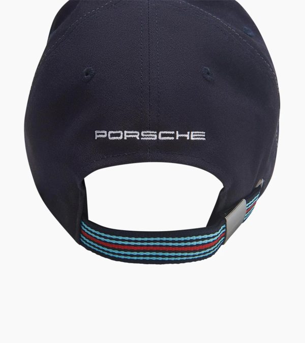 Baseball cap with infinitely adjustable fastener, inspired by the “Porsche 917 Hippie”. With “MARTINI RACING®” embroidery at the front and “Porsche” embroidery on the back.Baseball cap with MARTINI RACING® embroidery on the front and ‘Porsche’ embroidery on the back. Infinitely adjustable strap in traditional MARTINI RACING® colours. Inspired by the Porsche 917 Long Tail MARTINI RACING® – better known as the Porsche 917 ‘Hippie’ – there is an appliquéd number 3 and chequered flag on one side.