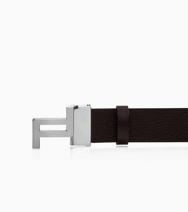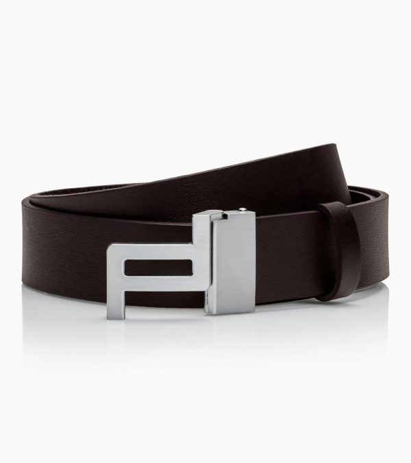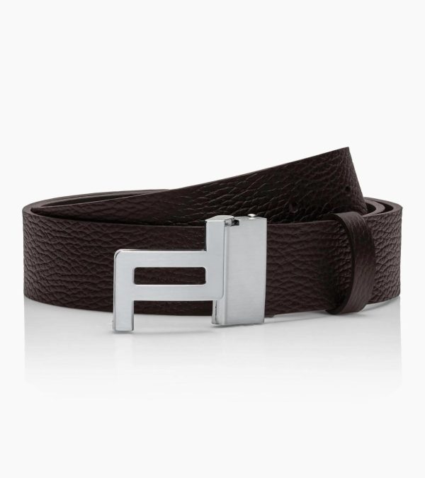 Stylish statement: Reversible belt for men with Porsche Design logo clasp and two different ways to wear it: high-quality grained leather or smooth leather. Width 35 mm.Stylish statement: The Porsche Design Business Belt Icon Reversible 35 adds that extra something to business suits and outfits for formal occasions. The new PD-Icon reversible buckle with a brushed surface is paired with a 35 mm-wide belt strap which can be worn either way round: as a version with high-quality grained leather or a version with a traditional look in sophisticated smooth leather. The endpiece on the clasp not only allows the belt to be turned around but the belt strap can also easily be removed and shortened if necessary. Designed and made in Austria.