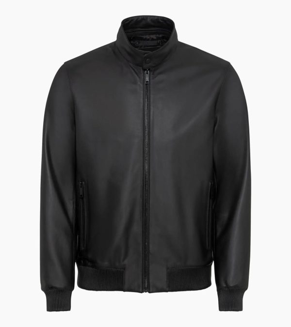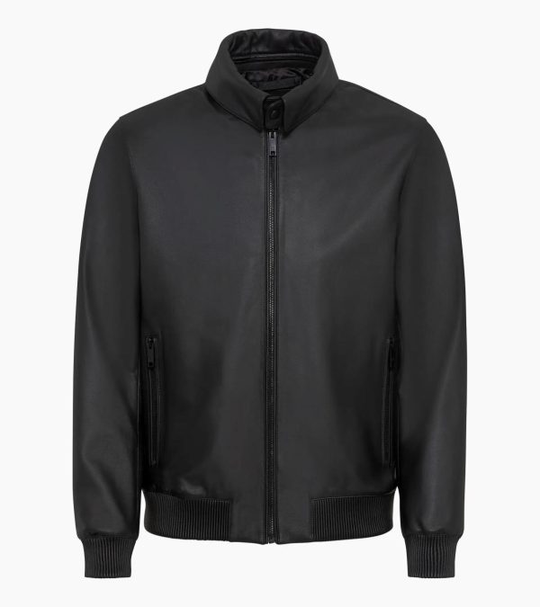 Exclusive leather jacket from Porsche Design with a removable stand-up collar.Puristic design meets functional highlights: the cabrio leather jacket makes a clear statement. The characteristic detachable stand-up collar with magnetic closure and Porsche Design icon embossing guarantees maximum flexibility in terms of style and function. Custom-made, branded zip pullers on the front zip and the concealed zip pockets at hip height underline the clean look of the blouson jacket. Inside, the front part of the jacket sets special visual accents with two zip pockets and the eye-catching PD jacquard lining.