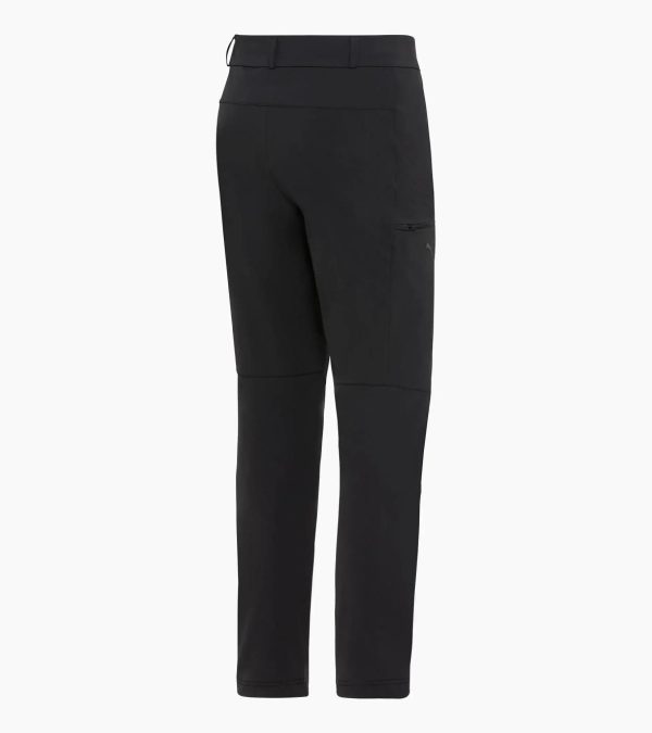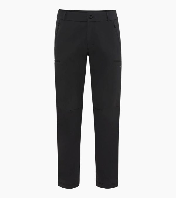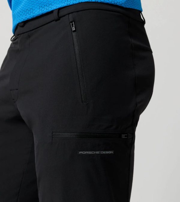 Functional cargo trousers from Porsche Design with a water-repellent finish. Comfortable regular fit with great freedom of movement.As stylish as they are functional: the cargo trousers are the perfect companion for hikes and other outdoor activities on cooler days. This is ensured, among other things, by their water-repellent finish and their comfortable fit with stretch material. The adjustable drawstring at the leg ends allows even more freedom of movement. The two pockets at hip height and the taped pockets with zips above the knees are also practical. The denim button fastening on the waistband rounds off the stylish design.