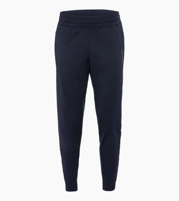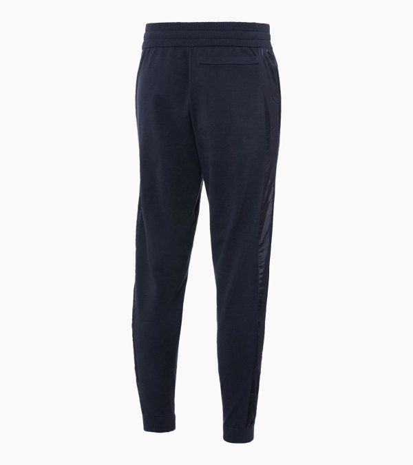 Comfortable leisure trousers from Porsche Design with an elastic band and shiny stripes along the side.For travelling, training or leisure: with their two pockets with zips, shaped ribbed hems and a back pocket, these casual trousers are ideal for any occasion. An elastic band with branded drawstring unites design and comfort. With shiny stripes along the side, these trousers are a real eye-catcher.