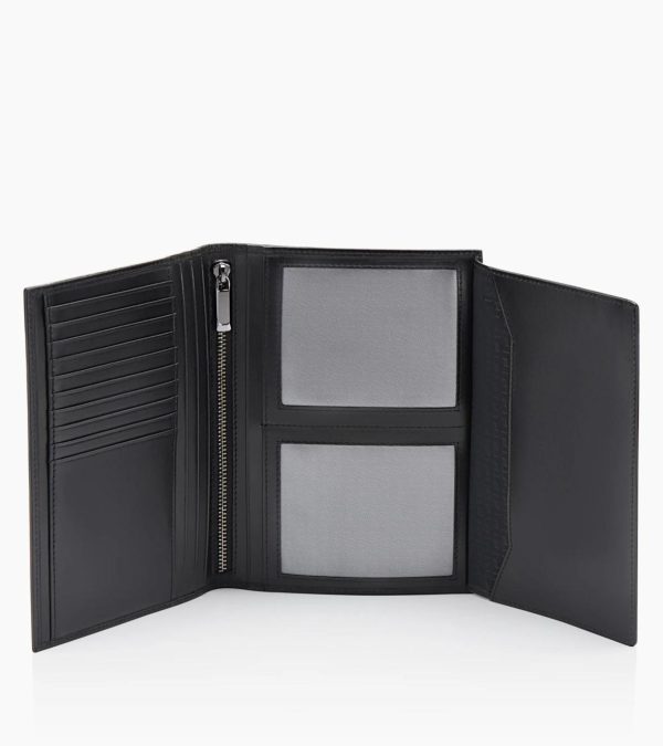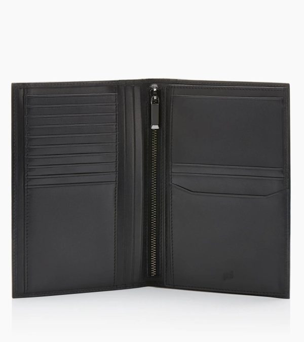 The only wallet you’ll want to travel with. This large wallet, crafted from smooth leather, has 13 card slots, plus space for ID, bills, and eight large pockets for your passport or documents.An elegant blend of style and functionality. Meet the Porsche Design Classic Collection. Made from high-quality, smooth leather in black with a seamless finish, the chic exterior, featuring the signature Porsche Design metal logo tag, gives the Porsche Design Classic Billfold 13 its timeless and minimal look. With both high-quality interior styling and a smart design, this men’s wallet is generously proportioned, designed with functionality and organization in mind. This spacious wallet is your ideal travel companion, with 13 card slots, a zipped pocket for bills, two mesh pockets for ID, and eight generous slots for documents, papers, or passport.