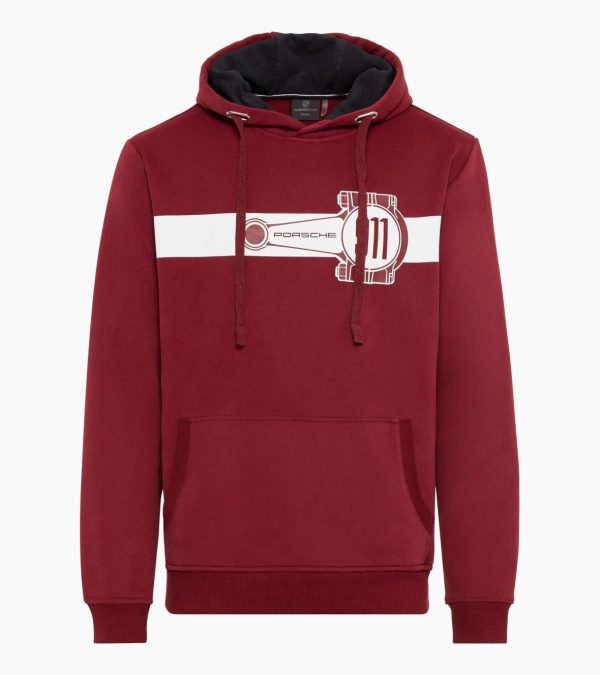 Casual look, exclusive design: the Porsche hooded sweatshirt with a high-quality connecting rod print. For a relaxed, yet stylish Porsche look and feel.Exclusive design, maximum comfort: the Porsche hoodie with a high-quality connecting rod print on the chest. The attached kangaroo pockets offer space for keys or a place to warm your hands. The soft, lined hood also provides optimum comfort. The high-quality metal eyelets for the wide hood cords and the loop label on the hem of the back set subtle yet exclusive accents.
