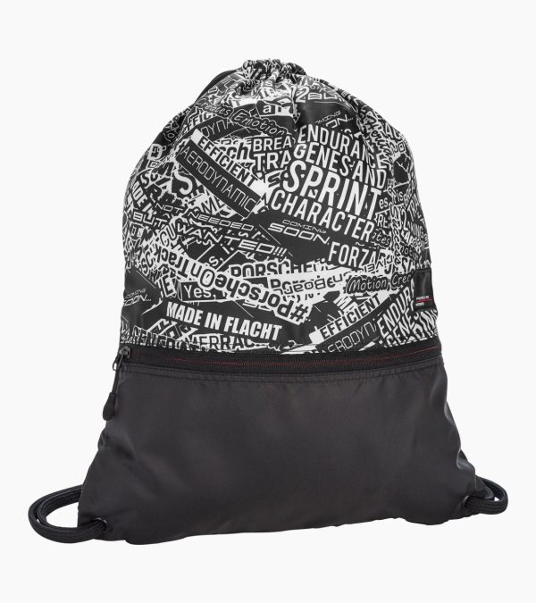 Exclusive Porsche gym bag made from 100% recycled material.Bring Porsche’s racing spirit to your workouts with this exclusive gym bag made from 100% recycled polyester. Inspired by the camo-wrapped 911 GT3 R, its high-performance design has a zip pocket and Porsche sayings printed on top. The sticker hang tag completes this sleek, sustainable bag’s authentic motorsport vibe.
