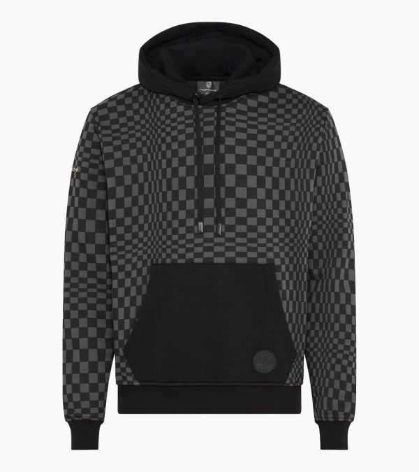 Unisex hoodie from Porsche with all-over Pascha pattern and convenient kangaroo pocket.A tribute to iconic design and sporty elegance – the legendary Pascha pattern gives the Porsche 911 Spirit 70 Collection its striking look. The hoodie captivates with its all-over Pascha print, while the contrasting kangaroo pocket and matt ‘Icons of Cool’ badge make it a true eye-catcher. The drawstrings with logo details underline the sporty, elegant look. The design is rounded off by ribbed cuffs on the sleeves.