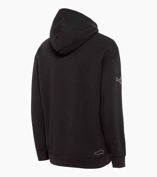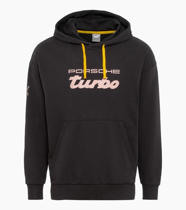 Comfortable regular-fit hoodie with iconic Porsche Turbo print on the chest and vehicle print on the back.The term ‘Turbo’ means breathtaking acceleration, unprecedented intensity and incredible thrills – based on unique designs such as the legendary flat engine, the powerful rear and the unmistakable wings of the Porsche 911 Turbo.This heritage is reflected in the exclusive Turbo 50Y collection, designed to mark the 50th anniversary of the Porsche 911 Turbo. The hoodie from this collection is stylishly designed, very comfortable and makes a striking statement.With its contrasting red lining and a striking Porsche Turbo print on the chest, it immediately catches the eye. The Turbo 911 vehicle print with lettering on the back makes a powerful statement. The design is rounded off by a subtle Porsche 911 label above the hem, which perfectly underlines the high-quality workmanship.