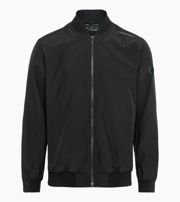 Light blouson jacket from Porsche Design. Comfortable, breathable and water-repellent.Ease into everyday life: the comfortable blouson jacket made of 100% recycled polyester with rainCELL® technology is both water-repellent and airy. With laser-cut underarm and neck ventilation as well as a geometric back cutout, it is also extremely breathable. Two pockets with hidden zips and a slanted inside chest pocket with an invisible zip offer enough space for all the essentials. The structured ribbed collar and shaped ribbed cuffs on the sleeves and waistband are both functional features and elegant eye-catchers.