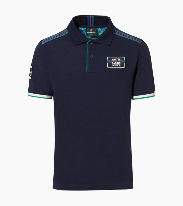 Sporty short-sleeve polo shirt with accents in typical “MARTINI RACING®” colours and tonal “PORSCHE” logo on the back.