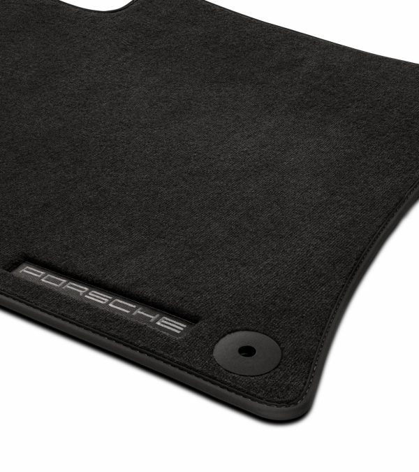 Upgrade your Porsche Cayenne interior with our luxurious four-piece floor mat set in Umber. Each mat is meticulously crafted to complement your vehicle’s aesthetics, featuring a high-quality Nubuk edging and an intricately inlaid, silver-embroidered ‘PORSCHE’ lettering. Available in various interior colors to match your personal style, these mats not only enhance the look of your vehicle but also offer durability and protection for your vehicle’s flooring.