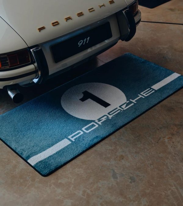 Stylish Porsche Heritage design garage mat perfect for all Porsche fans, drivers and dreamers.