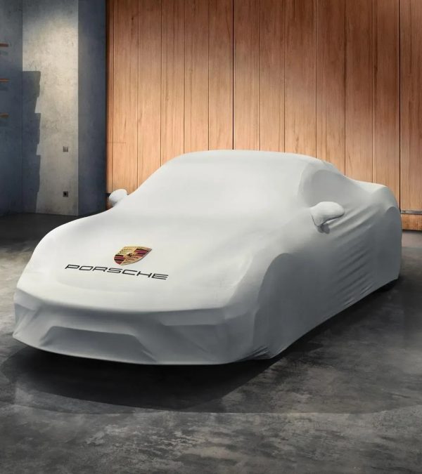 Protect your Porsche 718 Spyder (981 & 982) with this custom-fit indoor car cover. Crafted from breathable, anti-static, dirt-repellant material, it features a vibrant Porsche Crest and “PORSCHE” logo.