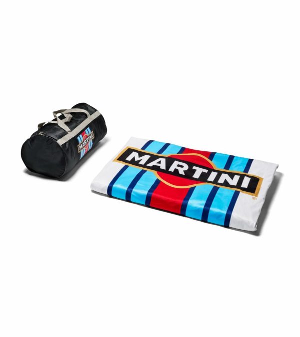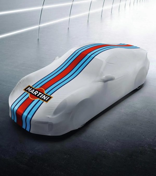 Custom-fit indoor vehicle cover made from breathable, antistatic and dirt-repellent material. In Martini Racing design.