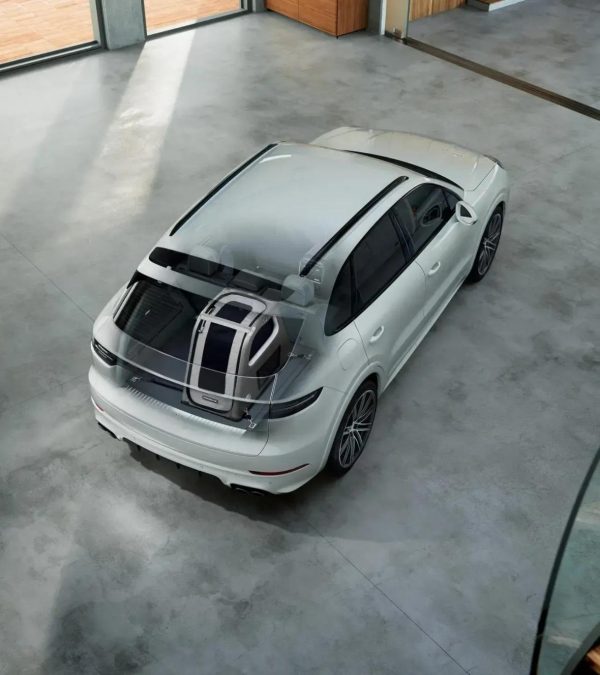 Dogs of different sizes can be transported easily and safely with the inflatable Porsche luggage compartment box.