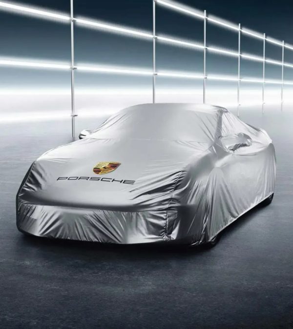 The Porsche outdoor, all-season car cover is designed to perfectly fit your Porsche 718 (981 & 982) and is made from a white, completely waterproof material with a colored Porsche crest and PORSCHE logo. Whether your car is safe in the garage, or exposed to the elements, it is always a good idea to keep it covered. The car cover is made from an exclusive fabric that repels heat from the sun to help lower the temperature inside your car. The Porsche outdoor car cover also provides a layer of protection for your Porsche against weather elements and can help prevent minor dings, dirt, and debris from building up on your paint.