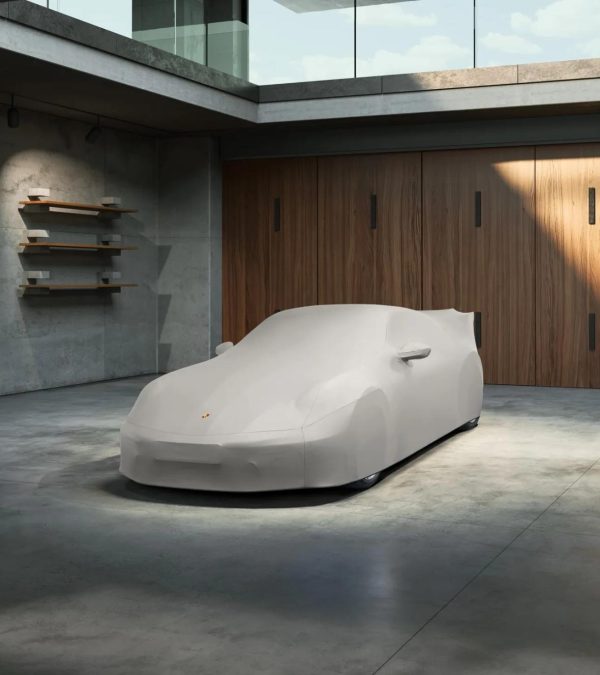 Keep your 911 (992 II, without aerokit) looking its best with the Porsche Outdoor Car Cover in Beige. This perfect-fit cover is designed to provide reliable protection against the elements. Crafted from breathable and water-repellent material, it shields your vehicle. The cover features a full-color Porsche Crest for added style, a viewing window for the rear license plate, and anti-theft protection for enhanced security. Plus, it comes with a handy bag for convenient storage when not in use.
