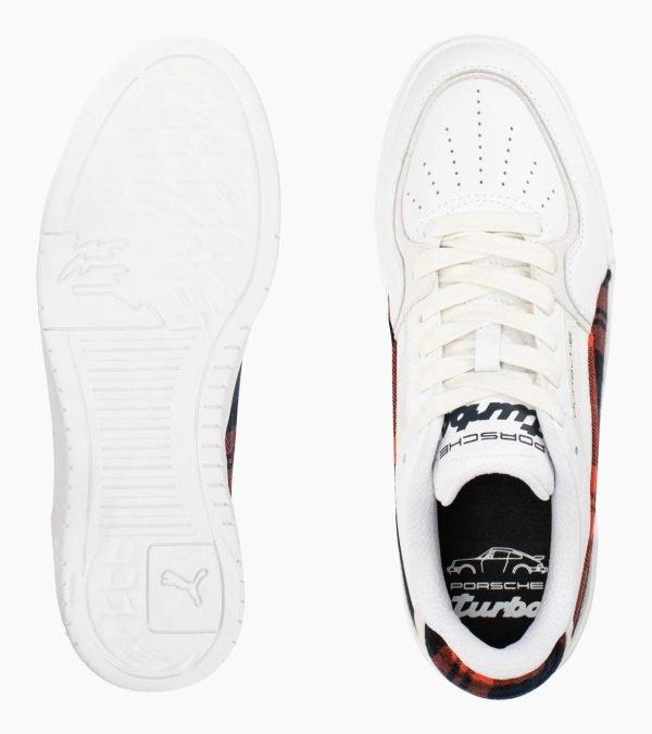 Exclusive trainers from Porsche with iconic ‘McLaughlin’ tartan pattern.Inspired by the unmistakable design of the Porsche 911 Turbo, the Porsche Legacy Collection offers style and performance for everyday life. The California-style trainers from PUMA bring motorsport spirit to the streets. Details such as the toe perforation and the simple yet classic style allow fans to transfer their love of motorsport to everyday life. The tartan pattern is reminiscent of the legendary tartan from the interior of the first Porsche Turbo in 1974 and is an iconic design highlight.The trainers also come in an exclusive box that features the tartan design inside and out.