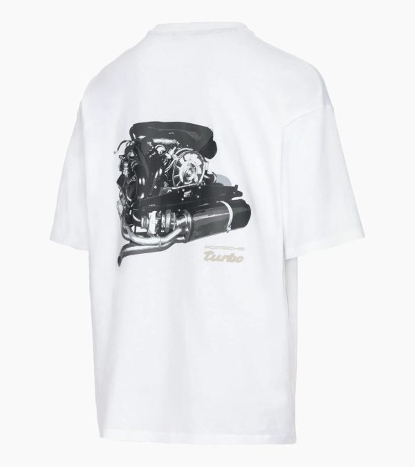 Stylish T-shirt with a picture of the engine of the first Porsche 911 Turbo.Inspired by the unmistakable design of the Porsche 911 Turbo, the Porsche Legacy Collection offers style and performance for everyday life. The Statement Graphic Shirt is a must-have for all fans of streetwear thanks to the image of the first Turbo engine on the centre of the back.