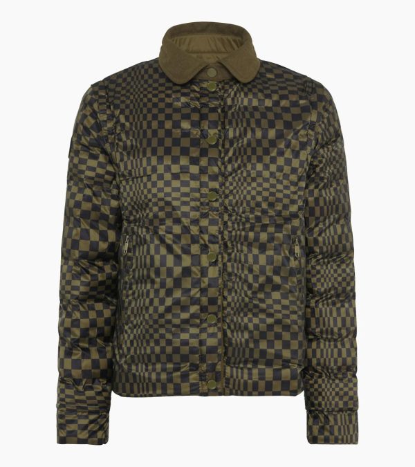 Porsche women’s reversible jacket with removable sleeves and iconic Pascha pattern.A tribute to iconic design and sporty elegance – the legendary Pascha pattern gives the Porsche 911 Spirit 70 Collection its striking look. The women’s reversible jacket with removable sleeves adapts conveniently to any outfit: the top area of the outer side features quilted nylon with contrasting high-quality fleece at the bottom. Reversible buttons along the sewn placket, a patch chest pocket and seam pockets with zips provide convenient details. The Porsche lettering on the left sleeve and the ‘Icons of Cool’ canvas tape with a Gold-coloured Heritage rivet on the lower right hem add special highlights. On the inner side, the jacket features the iconic Pascha pattern, while combining style and function in one look with the Gold-coloured Porsche lettering below the collar on the back and the rubber ‘Icons of Cool’ label on the sleeve.