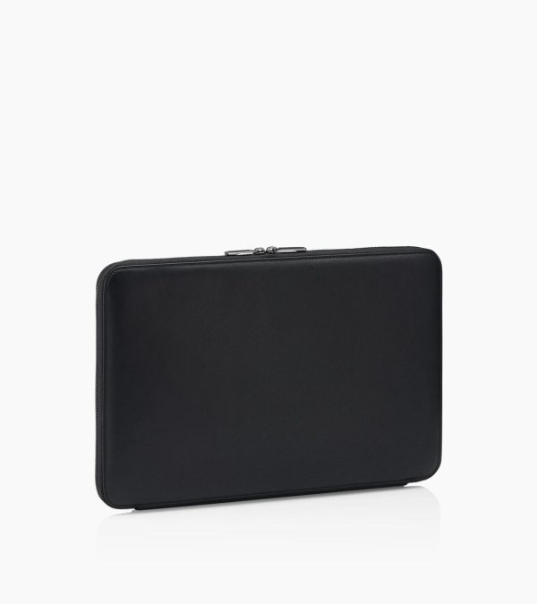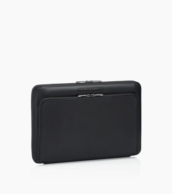 Exclusive Porsche Design laptop sleeve in grained calf leather for up to 15-inch notebooks. Additional zippered front pocket with organizer.