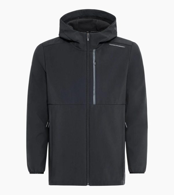 High-quality softshell jacket made of warm, water-repellent, and 100% recycled CORDURA® fabric. Ideal for training or hiking, or as a casual jacket.A multipurpose perfect fusion of style, protection, and sustainability: The Porsche Design Softshell Jacket is the perfect jacket for spring and fall, and active outdoor trips. The secret lies in the material: CORDURA®, with its sturdy fabric structure made of recycled polyamide, – is abrasion-resistant, water-repellent, and quick-drying, and feels good to wear. Inside, the material has been roughened for a soft and even more comfortable feel. Combined with the technical design and clean look, with an adjustable hood and dynamic lines, the result is a jacket that is as functional and comfortable as it is stylish. The covered, rubberized front zipper with double piping, reflective details, and side zipper pockets with Porsche Design tags emphasize the sporty feel and heritage of the jacket.