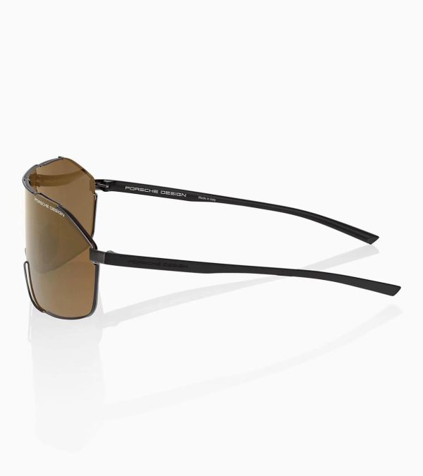 Modern shield sunglasses for men in a sporty style, by Porsche Design. Exclusive stainless steel spring wire frame with lightweight plastic temples.Sunglasses with a statement: The exclusive Porsche Design P’8921 glasses perfectly combine Bauhaus principles with sportiness. The form of the greatly reduced frame clearly follows the function: Flexible spring wire runs precisely both in front and behind the lenses, giving the effect at the front that the lenses in the shield glasses almost float in the frame. Reduced use of materials and the minimalistic design provide an exciting contrast to the lightweight, flexible temples made of RXP® high-performance plastic. A combination that doesn’t just ensure maximum lightness and ideal comfort, but also lends these sunglasses a uniquely dynamic style.
