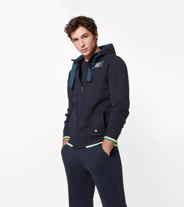Sporty hoodie in dark blue with two side pockets, with accents in typical “MARTINI RACING®” colours.