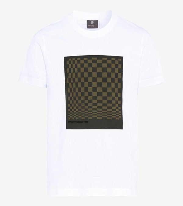 Unisex T-shirt from Porsche with high-quality Pascha pattern print.A tribute to iconic design and sporty elegance – the legendary Pascha pattern gives the Porsche 911 Spirit 70 Collection its striking look. The print makes the T-shirt a real eye-catcher. The iconic Porsche lettering on the lower left part of the Pascha print, applied as a flock print, adds another highlight. On the back, a 3D print below the collar completes the design.