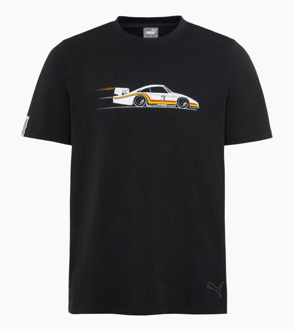 Exclusive T-shirt from Porsche x PUMA with a print of the legendary ANDIAL 935-L “Moby Dick” on the front.A symbiosis of motor racing spirit and exclusive design: the stylish T-shirt marking the 50th anniversary of the North American tuning house ANDIAL, which was synonymous with the success of Porsche motorsport in the 70s and 80s in the U.S. The print of the unique ANDIAL 935-L “Moby Dick” race car – which won the legendary 24-hour race in Daytona in 1983 – makes the T-shirt a real eye-catcher. The tonal scheme of the small PUMA cat logo on the front, the Porsche branding on the back and the woven patch with ANDIAL logo on the right sleeve underline the detailed design.