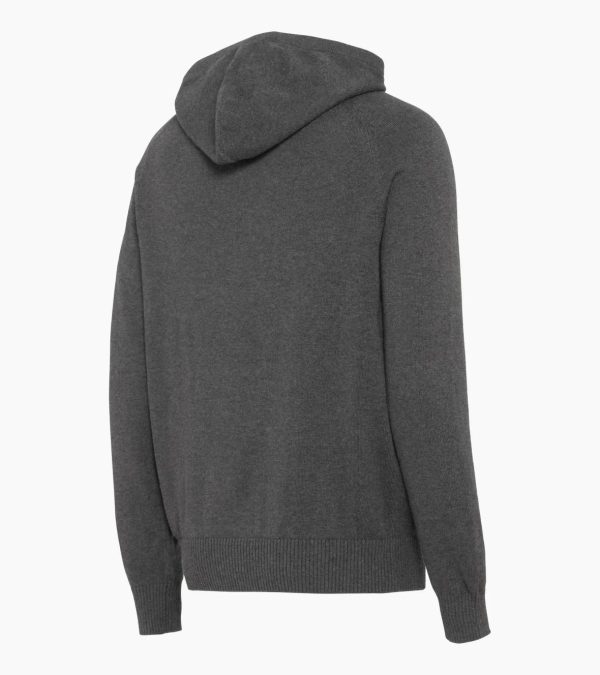 Timeless knitted sweater from Porsche with a integrated hood and subtle design details. Regular fit.Times change, but the Porsche 911 has remained timeless and modern since 1963 – a true classic. Designed to mark the 60th anniversary of the legendary sports car, the 60Y Porsche 911 collection combines sporty elegance, subtle details and high-quality materials in a modern, timeless look – echoing the classic car. The exclusive knitted sweater with integrated hood is comfortable and casual with a regular fit. High-quality materials ensure a comfortable feel. The loop label with Porsche lettering and the small metal pin with the 60Y 911 logo on the hem complement the clean look of the hoodie with subtle design details.
