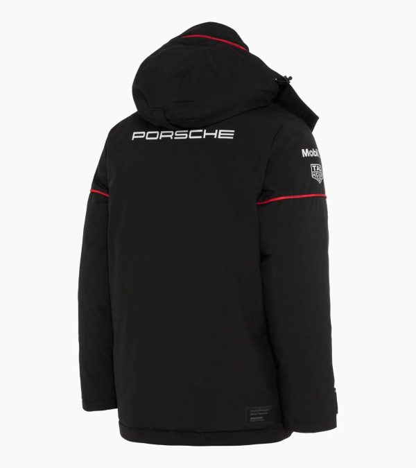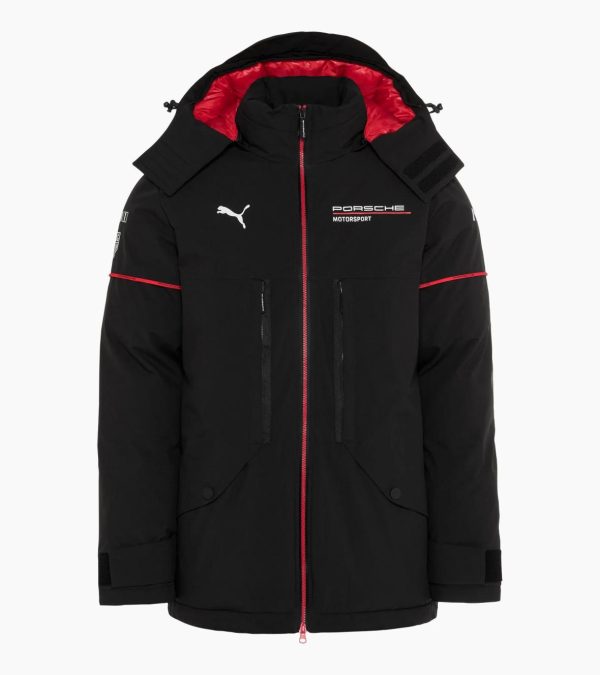 Padded unisex parka inspired by the Porsche Motorsport team clothing with a removable hood and high collar.Experience the pure passion of motorsport with the Porsche Motorsport Replica Collection and feel the motorsport team spirit. Striking Red accents and the iconic Pascha pattern of the 1970s combine the rich history of Porsche with the dynamics of racing. The striking contrasting zip in Red makes a stylish statement in the front centre, complemented by the Red piping on the sleeves, which create subtle sporty accents. Equipped with a removable hood and high collar, the parka offers additional protection against the elements and ensures maximum flexibility. Thoughtful details such as the vertical and horizontal pockets offer ample storage space and are equipped with flaps or zips to keep valuables safe. Adjustable cuffs and an adjustable hem ensure a perfect fit and effectively keep out the cold.