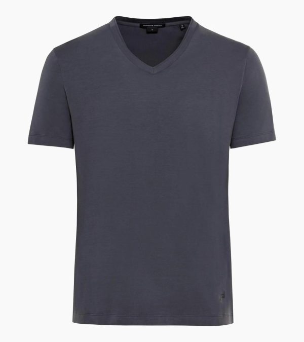 Exclusives men’s basic T-shirt. V-neck with signature Porsche Design double trim collar. Premium mercerized cotton with elastane.A stylish essential: the Porsche Design V-neck T-shirt made from comfortable cotton-elastane jersey is a true all-rounder. The straight-cut men’s T-shirt with a signature double-layered neckline is made of soft fabric for maximum comfort. The exclusive mercerized finish not only offers an excellent fit, but also a moisture-wicking anti-odour effect. Perfect form meets intelligent function.