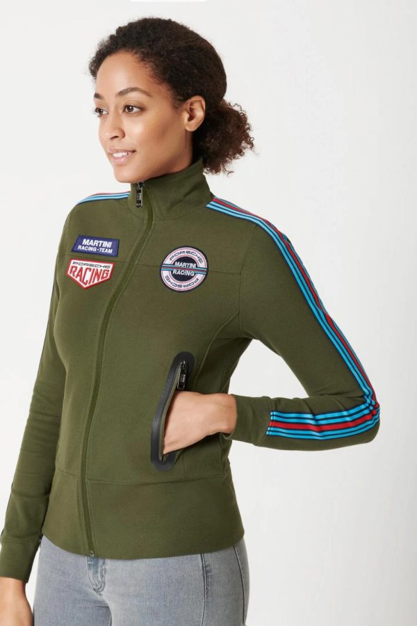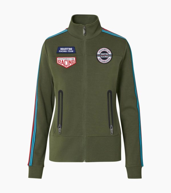 Women’s light sweatshirt jacket from the Porsche Driver’s Selection MARTINI RACING® collection. With badges inspired by the 917 KH.Ideal for sports, leisure time, everyday life and everything in between: The women’s lightweight sweatshirt jacket from Porsche Lifestyle MARTINI RACINGⓇ design is everyone’s perfect companion. The badges are inspired by the Porsche 917 KH from 1971. The shoulders and sleeves adorned with MARTINI RACINGⓇ stripes as well as the tonal Porsche print on the back complete the look.