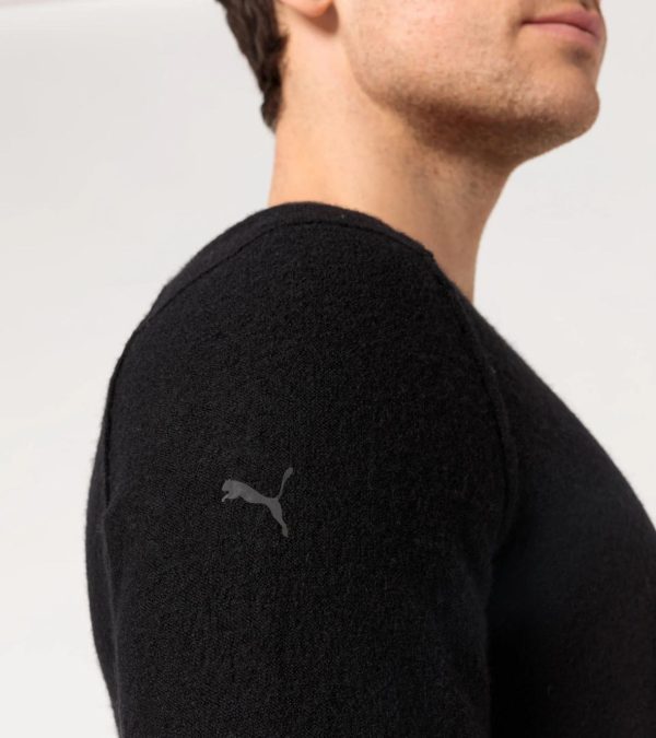Stylish crew neck pullover from Porsche Design made from high-quality merino wool.Combines comfort and warmth in a stylish design: the wool crew neck pullover made from high-quality merino wool. It captivates with its unique, reversed seam line and the PUMA Cat logo on the right arm. The ribbed cuffs and hem ensure an optimal fit. The Porsche Design logo on the left side of the chest is an exclusive detail highlight.